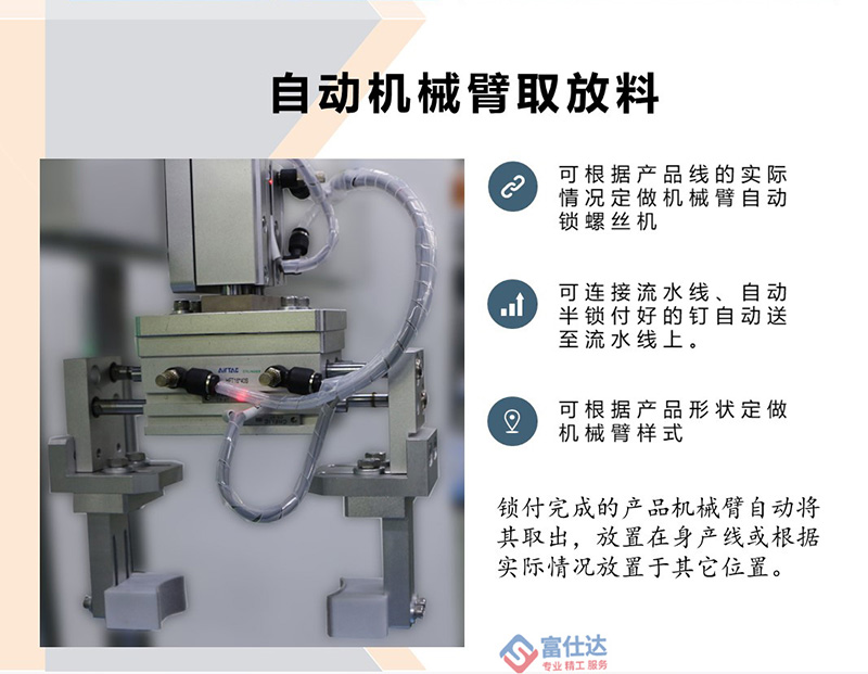 深圳市富仕達自動化設(shè)備有限公司是國內(nèi)領(lǐng)先的以自動鎖螺絲設(shè)備為核心的自動化設(shè)備制造商,堅持以客戶需求為中心,定制自動化鎖螺絲方案,已有超過4000家企業(yè)采用富仕達定制的自動鎖螺絲設(shè)備實現(xiàn)“機器換人”,節(jié)省大量人力成本。