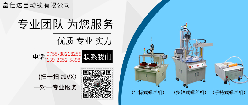 富仕達擁有獨立研發(fā)設計團隊,10多位自動化高級工程師,5000㎡自動鎖螺絲機生產(chǎn)、測試車間,專業(yè)售后服務團隊,為客戶提供方案設計、設備制造、操作培訓、售后服務等一站式服務。 公司將持續(xù)提升技術(shù)創(chuàng)新和產(chǎn)品服務方面的優(yōu)勢,堅持“專業(yè)、精工、服務”的企業(yè)理念,聚焦于自動鎖螺絲設備生產(chǎn),通過系統(tǒng)的一站式解決方案,真正的幫助客戶提升效率、降低成本,提升客戶的核心競爭力。