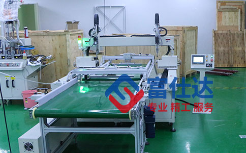 LED面板燈包括框形鋁合金外殼(散熱器與燈槽)、LED燈珠、擴散板、導光板、反光片或反光膜和后蓋。擴散板、導光板、反光紙和后蓋依次排列安裝在框形鋁合金外殼內,LED面板燈珠安裝在鋁合金外殼周邊的燈槽內并位于擴散板內上部。LED燈外框并用多顆螺絲來緊固。這里采用了富仕達的流水線自動擰螺絲機。