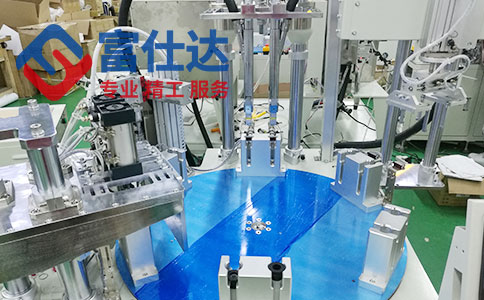 螺絲固定是現(xiàn)有技術中常用的固定方法,但一些工件上需要通過多個螺絲進行固定,如洗衣機腳墊的裝配,需要裝配一個甚至多個螺絲來緊固?,F(xiàn)有技術中安裝螺絲采用人工安裝的方式,利用電動或者氣動的螺絲鎖付槍逐一鎖付。這種安裝方法需要一個個的逐一裝配,耗時長、裝配效率低,而且同一個工件上不同螺絲鎖付的扭矩無法統(tǒng)一,裝配質量低。該案例中采用了富仕達的自動上料擰螺絲設備。